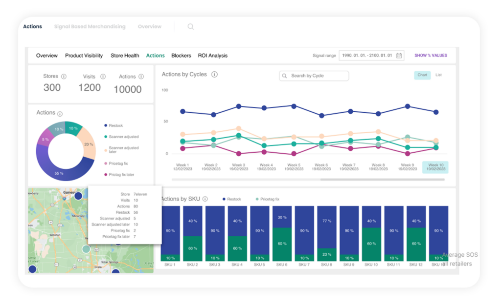 Signal-Based Merchandising helps you identify stores with the highest potential for incremental sales, as well as the most recurring out-of-stock issues, then deploy resources strategically to ensure the best possible ROI.